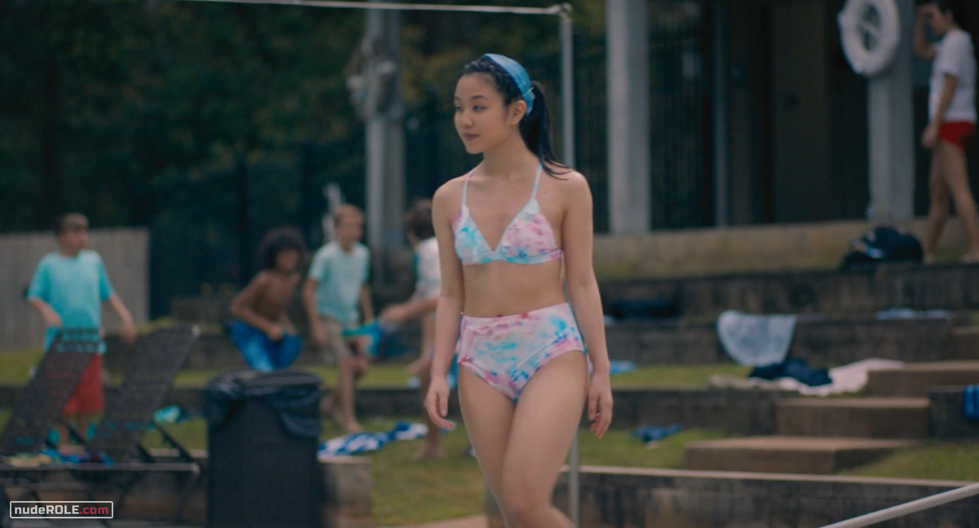 Anna Mikami as Phoebe plays sexy in the film “The Map of Tiny Perfect Things”, wich premiered in 2021. She showed figure in a bikini.