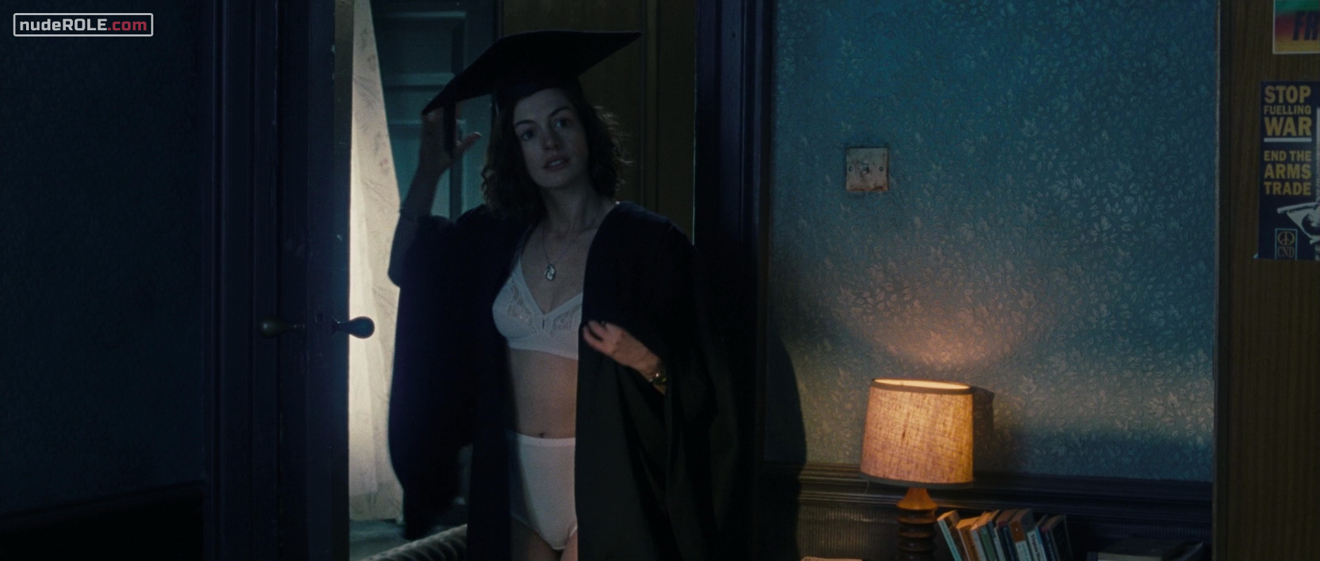Anne Hathaway as Emma plays sexy in the drama-romance film “One Day”, wich premiered in 2011. She showed cleavage, lingerie and bikini and figure in a bikini.
