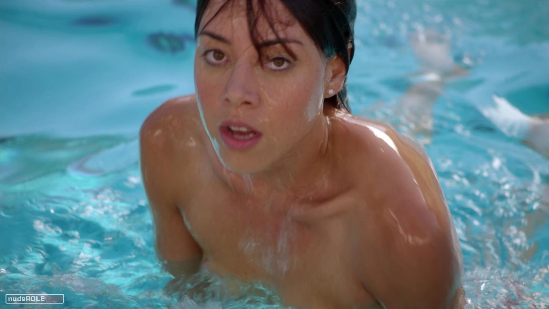 Aubrey Plaza as Brandy Klark plays sexy in the comedy-romance film “The To Do List”, wich premiered in 2013. She showed see-through clothing, lingerie and bikini and figure in a bikini and sex. You can find side view of her boobs.