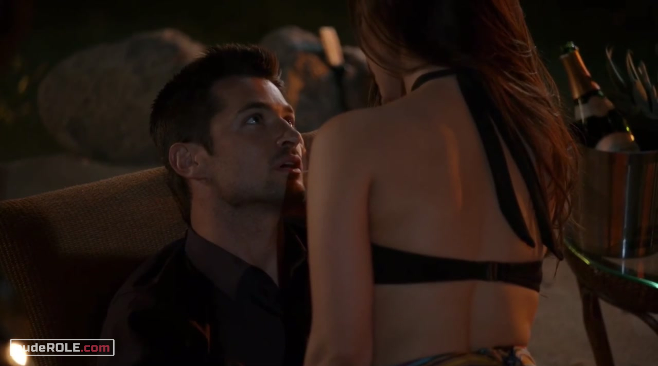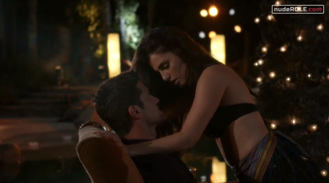 Jessica Lowndes as Adrianna Tate-Duncan plays sexy in the drama series “90210” season 5 episode 4, wich premiered in 2012. She exposed cleavage. Also there is moment with striptease.