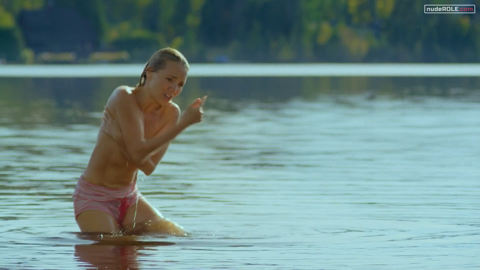 Lucie Vondrackova as Diana Maxa plays sexy in the comedy-romance film “Hotel Limbo”, wich premiered in 2020. She showed cleavage.