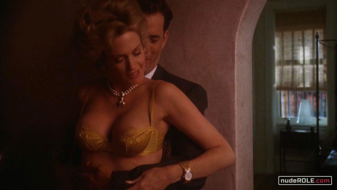 Melanie Griffith as Maria Ruskin plays sexy in the comedy-drama film “The Bonfire of the Vanities”, wich premiered in 1990. She exposed cleavage and lingerie. Also there is moment nip slip.