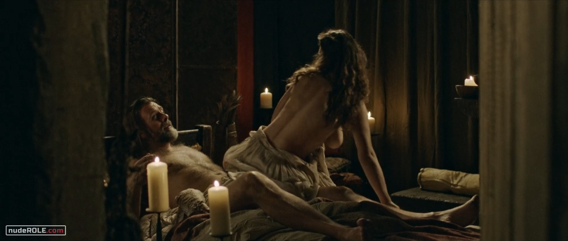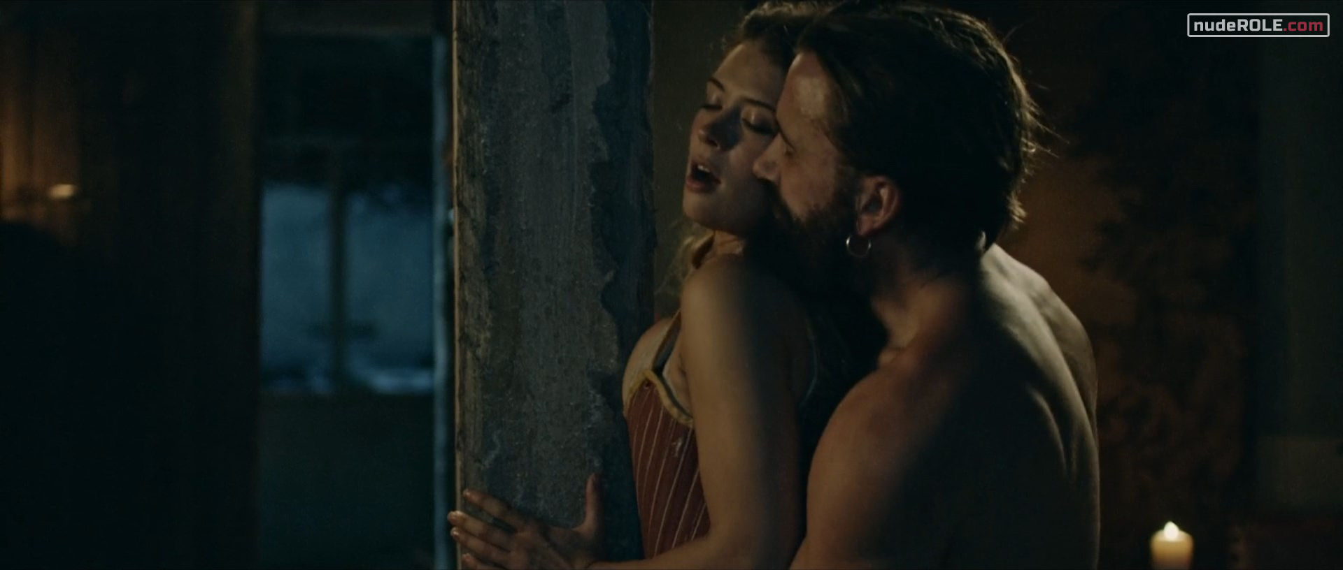 Mia Tomlinson as Anne Bonny plays sexy in the series “The Lost Pirate Kingdom” season 1 episode 3, wich premiered in 2021. She showed cleavage and sex. You can find side view of her boobs.