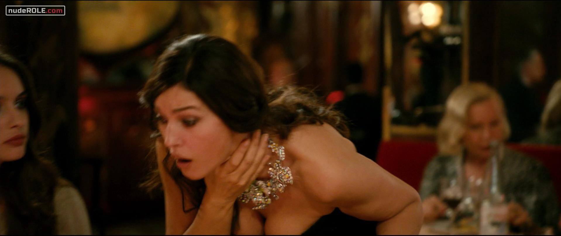 Monica Bellucci as Giovanna plays nude in the comedy-drama film “It Happened in Saint-Tropez” (Des gens qui s'embrassent), wich premiered in 2013. You can see naked boobs in this video with character Giovanna. She exposed cleavage. Also there is moment nip slip.