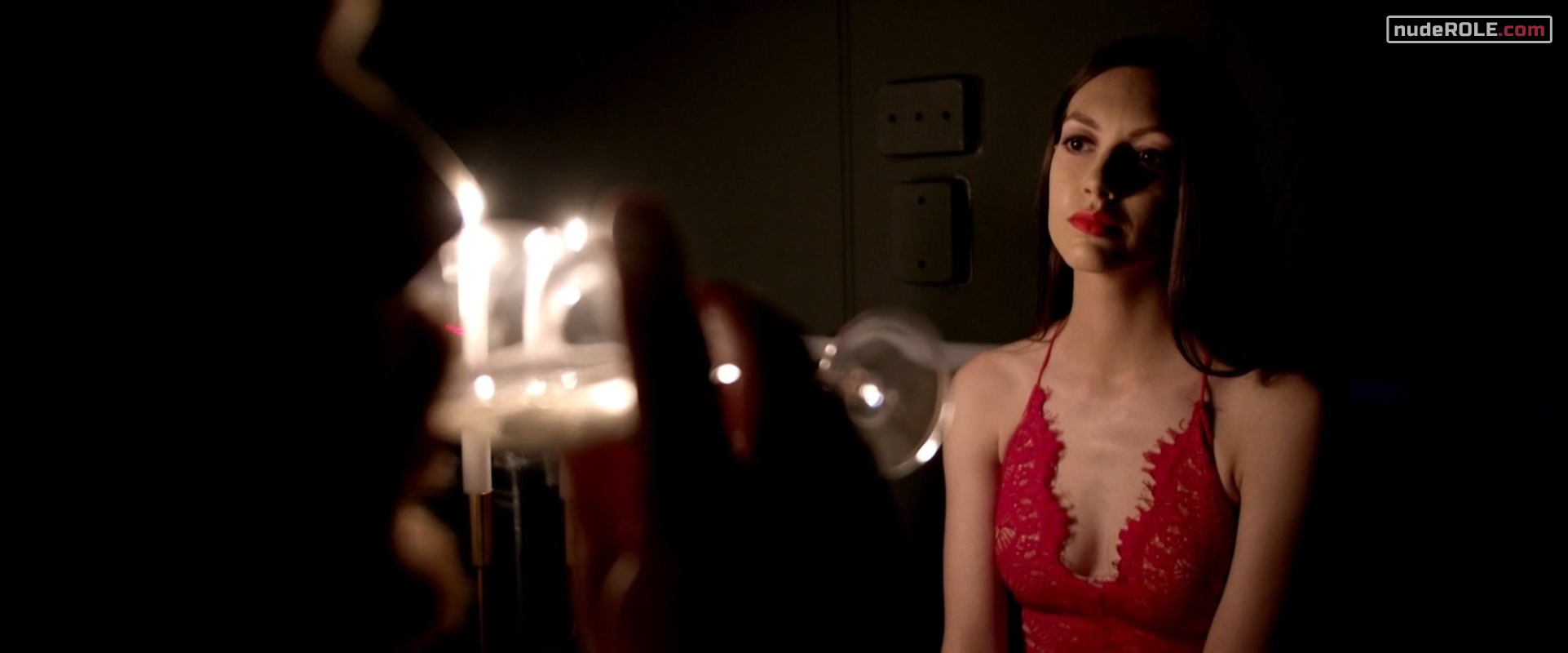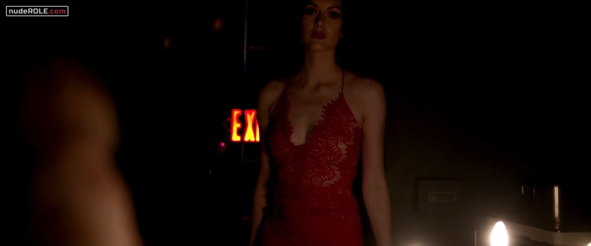 Rebecca Finch as Amelia Anderson plays sexy in the thriller film “Buoyancy”, wich premiered in 2020. She showed cleavage.