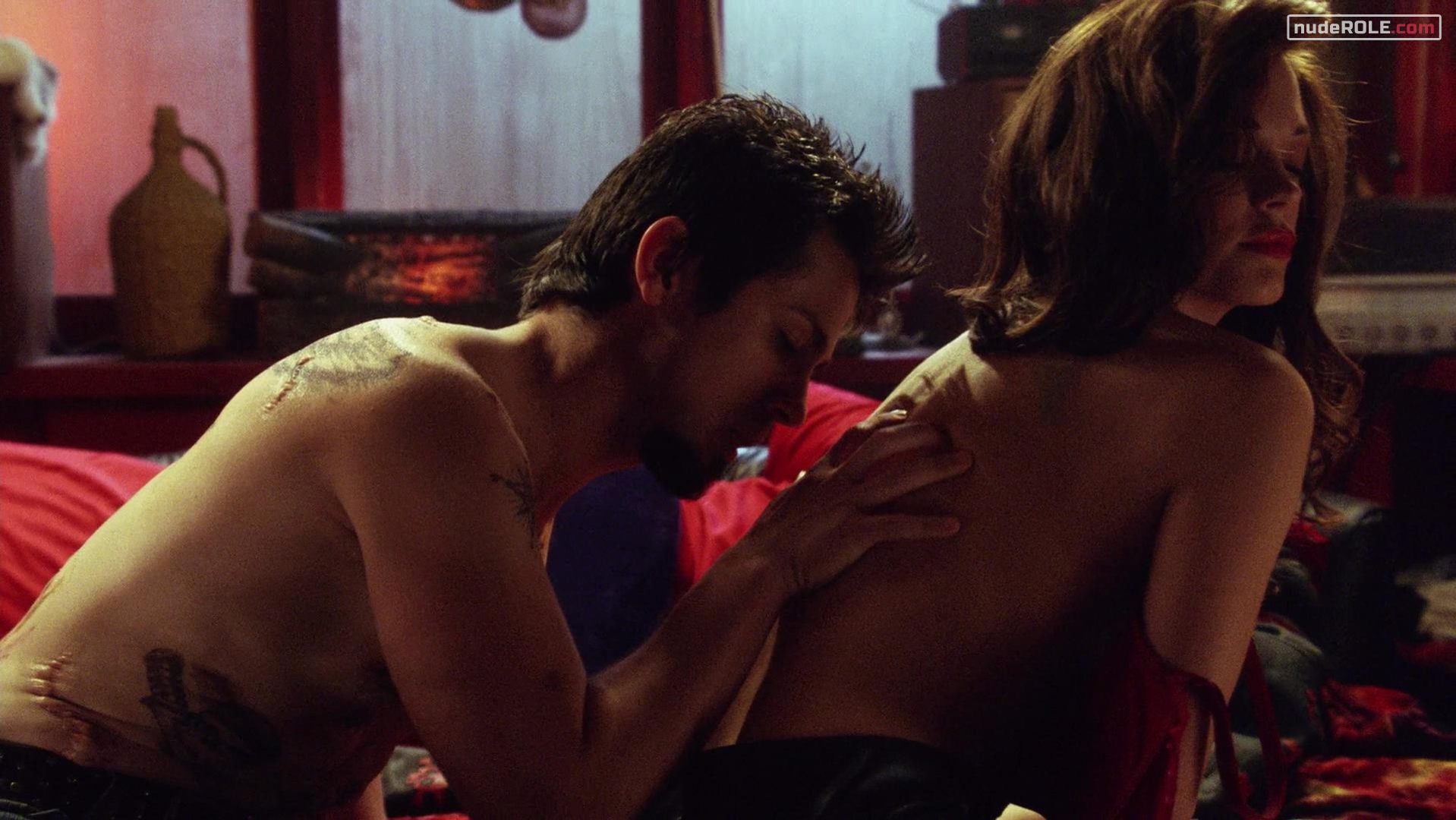 Rose McGowan as Cherry Darling plays nude in the film “Planet Terror”, wich premiered in 2007. Also there is moment with striptease. You can find side view of her boobs.