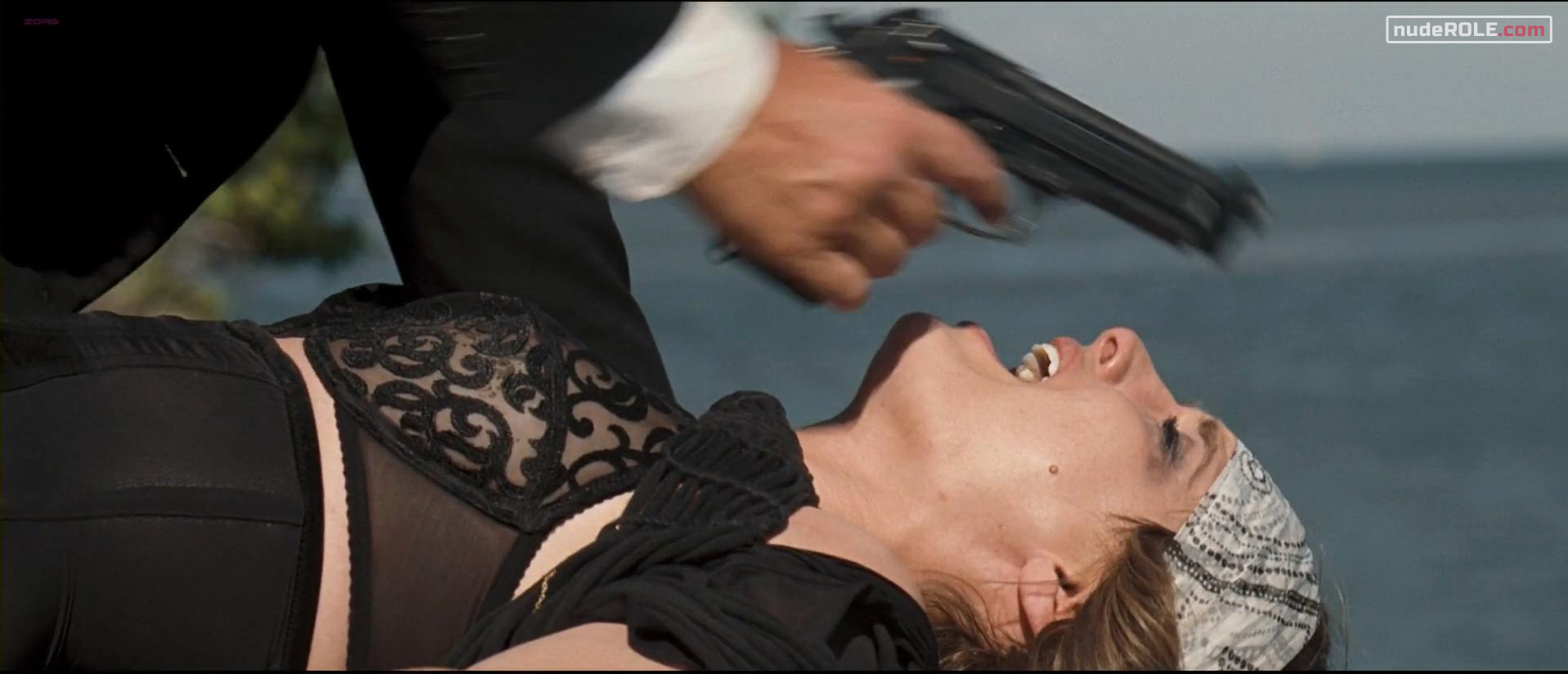 Stana Katic as Amber plays sexy in the drama-crime film “The Double”, wich premiered in 2011. She showed lingerie and sex.
