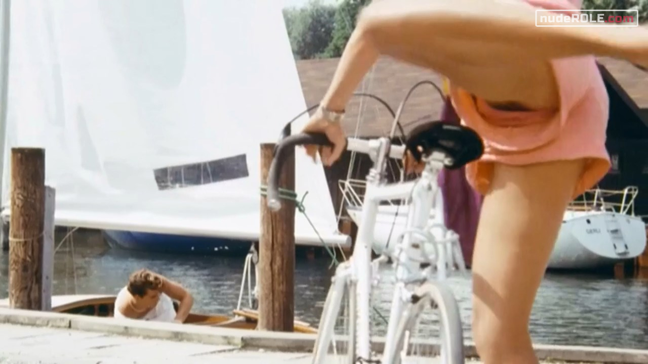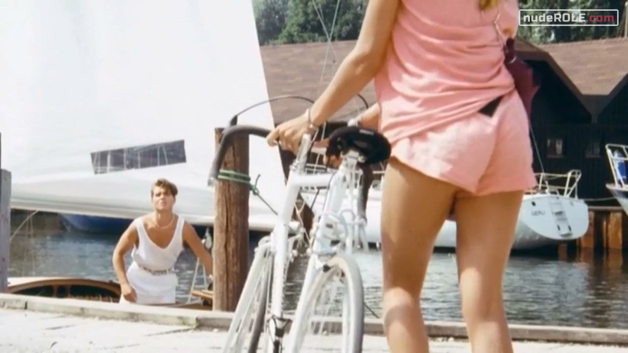 Ursula Karven as Tina plays sexy in the comedy film “Ein irres Feeling”, wich premiered in 1984. You can find side view of her boobs.